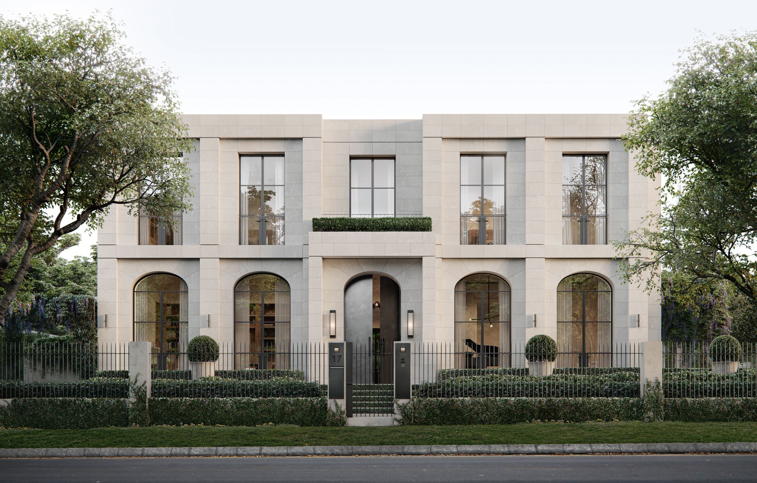 Influenced by classic architectural forms, Camberwell Residence is a sophisticated family home in Melbourne’s East, exuding a traditional yet contemporary style; acting as a case study in solidarity and permanence through considered volumes and tall proportions. Situated around a central axis, the residence translates traditional architectural forms into a modern context focused on symmetrical planning.