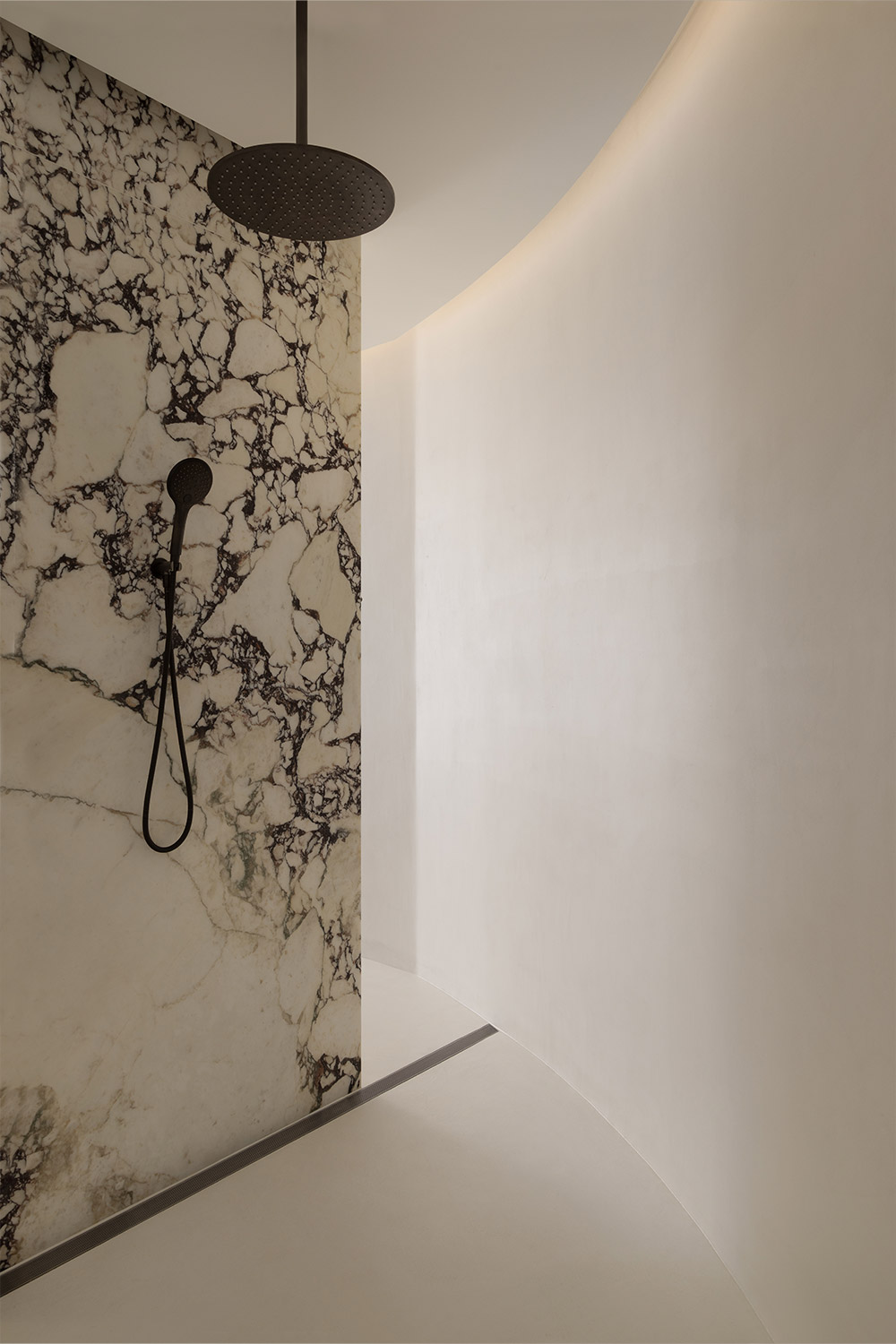 Entering inside, a feeling of subdued calm is evoked as the tactile bricks soar up the double height void. Drenched in natural light via the linear skylight, the textured finish of the foyer is revealed as the day continues. The client’s request for a “modernised yet relaxed” new space is evident; a warm, considerate, European-informed interior is introduced through unfolding living spaces.
